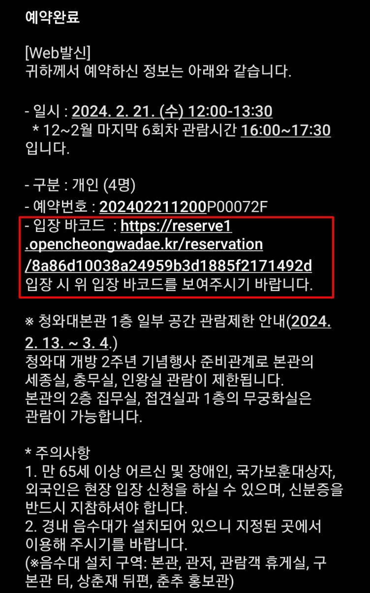 그 외에 청와대 관람자 유의사항은 아래 관람자 유의사항 바로가기로 들어가서 확인하시기 바랍니다.